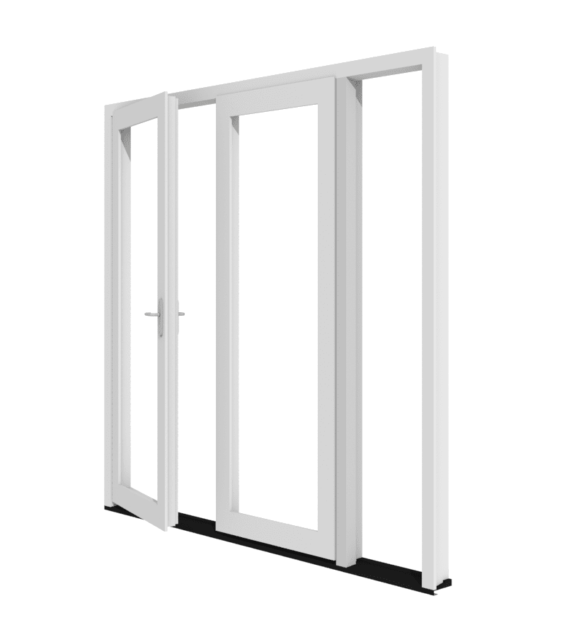 Dit is het kunststof kozijn met dubbele naar buiten draaiende tuindeuren van Toelevering Online met een zijlicht aan de rechterzijde. Dit kozijn garandeert veel lichtinval. Wij leveren deze stolpdeuren compleet afgemonteerd, inclusief meerpuntssluting, deurgarnituur en zelfs cilinder met kerntrekbeveiliging. Standaard is een laag reliëf dorpel toegepast, zodat je een lage opstap hebt. Wil je een doorlopend PVC profiel, dan kun je dit samenstellen via de configurator. De vaste deur is eenvoudig te bedienen met de integreerde espagnolet. Het kozijn en de deurvleugel kan voorzien worden van een houtnerf structuur door middel van renolit folie of kies voor een strak kozijn door acryl colour te selecteren of het basisprofiel in glad wit of crème. De verbinding van het profiel kan haaks of in 45 graden. Wil je het helemaal compleet, dan kan je het kozijn ook laten leveren inclusief beglazing. Wil je wat ventileren in huis, kies dan voor een ventilatierooster in het zijlicht of in de deuren. De kunststof kozijnen en deuren worden samengesteld uit gerenommeerde profielsystemen. Vul hierboven de maatvoering in, en selecteer de gewenste opties.